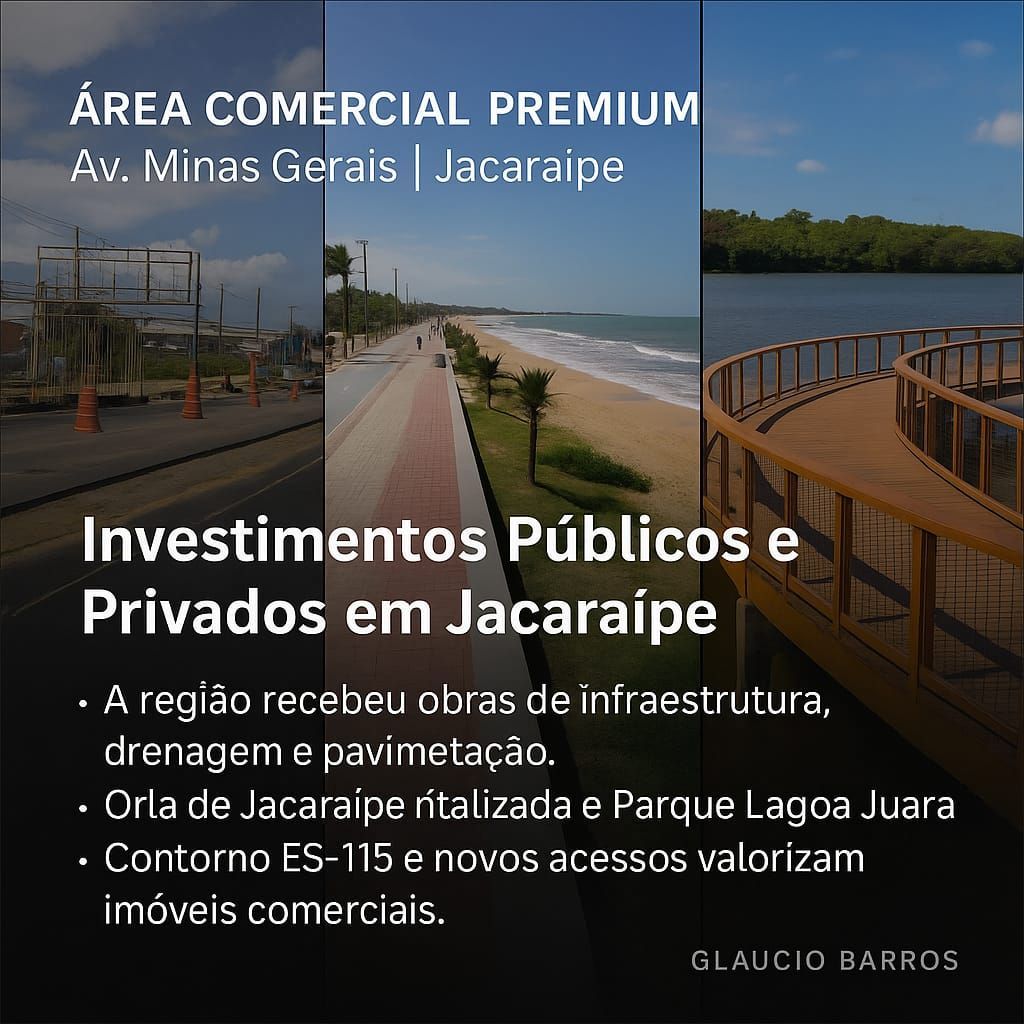 Situada entre dois ícones turísticos — a Orla revitalizada de Jacaraípe, hoje uma das mais belas do Espírito Santo, e a Lagoa Juara, que recebeu alto investimento em infraestrutura, lazer e turismo — a área oferece vocação natural para empreendimentos comerciais e de serviços.